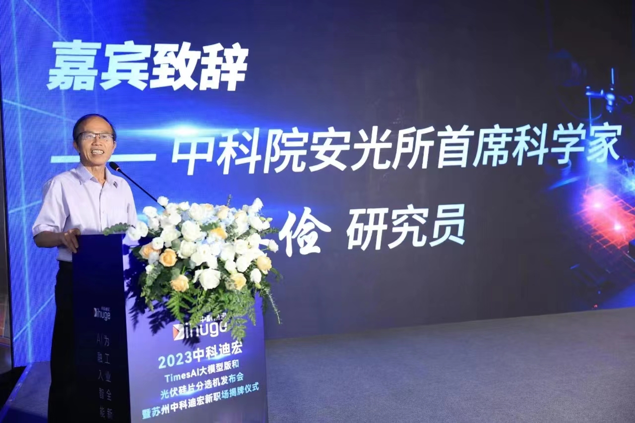 7月2日,中科迪宏在苏州召开TimesAI大模型版和光伏硅片分选机发布会,暨中科迪宏苏州公司新职场揭牌仪式。中科院安徽光学精密机械研究所首席科学家王英俭研究员和苏州市阳澄湖镇党委书记沈建先生,以及多家客户、合作伙伴共同见证了这一重要时刻。