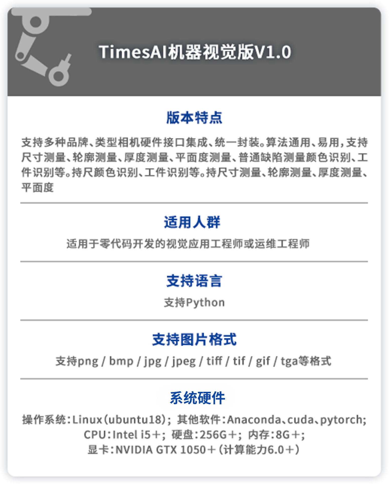 支持工业相机、3D扫描仪、PLC等工业设备,以及Modbus、TCP、串口通信等协议。