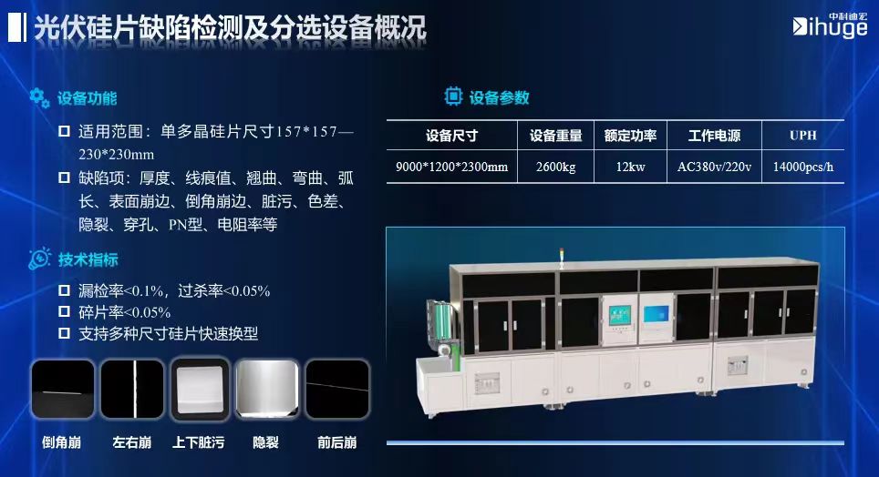 众所周知,光伏系统的性能和可靠性对于其广泛应用和长期运营至关重要。而近年来,大硅片、薄硅片已经成为行业一种不可逆的趋势,随之而来的就是硅片较以往变得更容易破损,如何高效剔除有瑕疵的硅片也就成了生产过程中无法回避的一个环节。